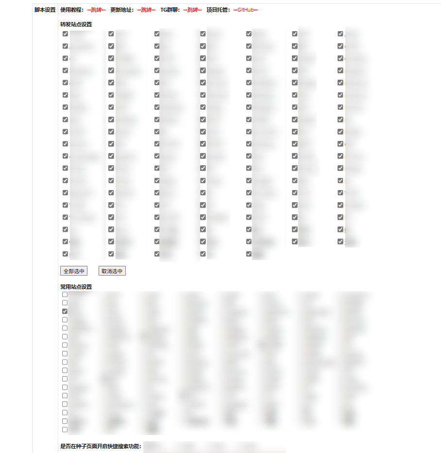 设置后刷新一下网页,会出现”转发种子“板块,但是很多站是不必要的,下一步需要调整。