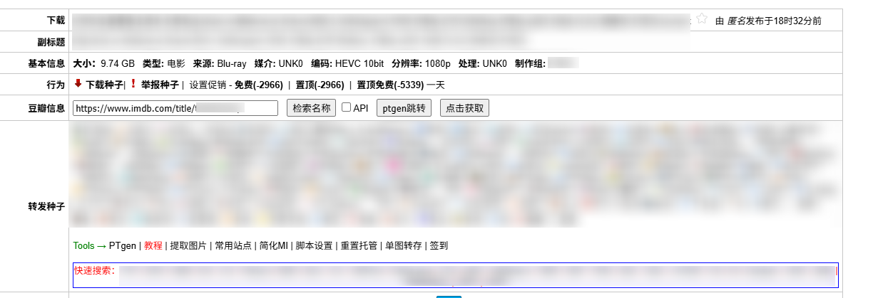 注意:有的站点会使用TMDB而不是IMDB,转种时注意检查。
